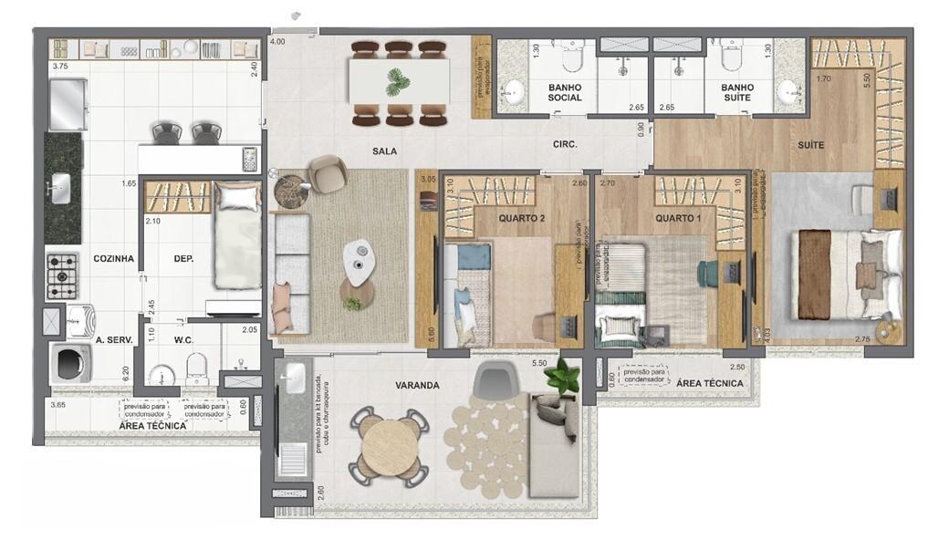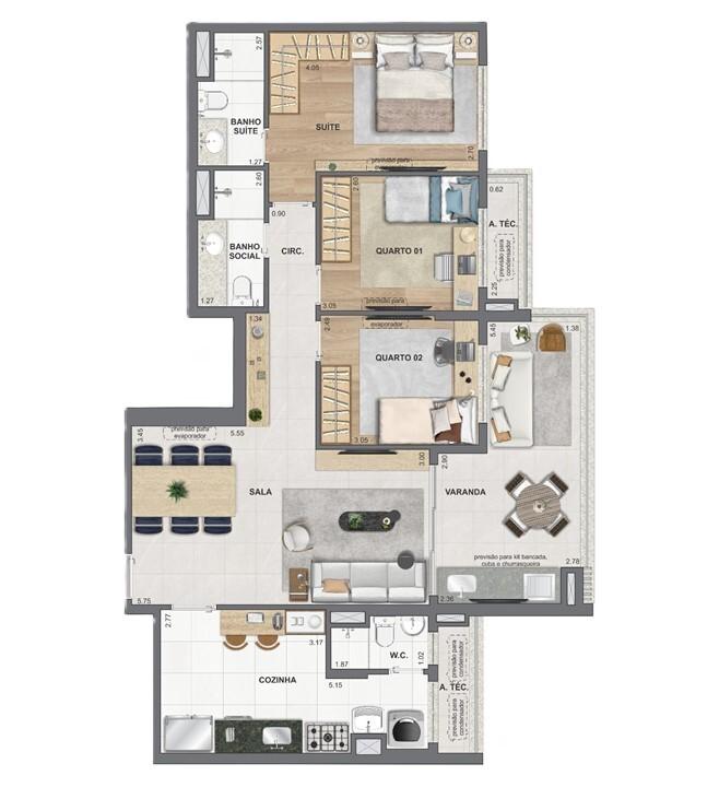 Planta 02 - 3 dorm 101,09m²