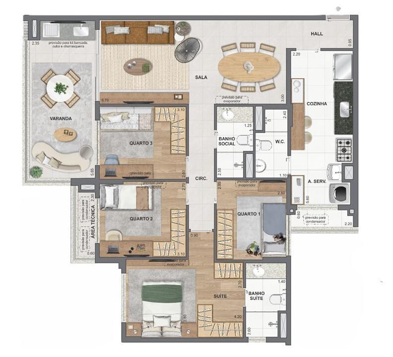Planta 04 - 3 dorm 117,70m²