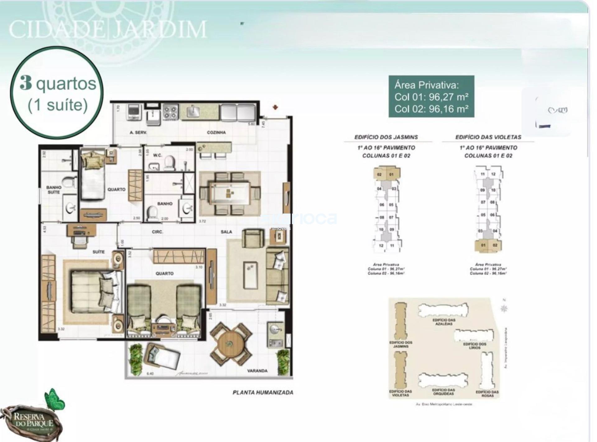 Apartamento para comprar com 95m², 3 quartos, 1 vaga de garagem.